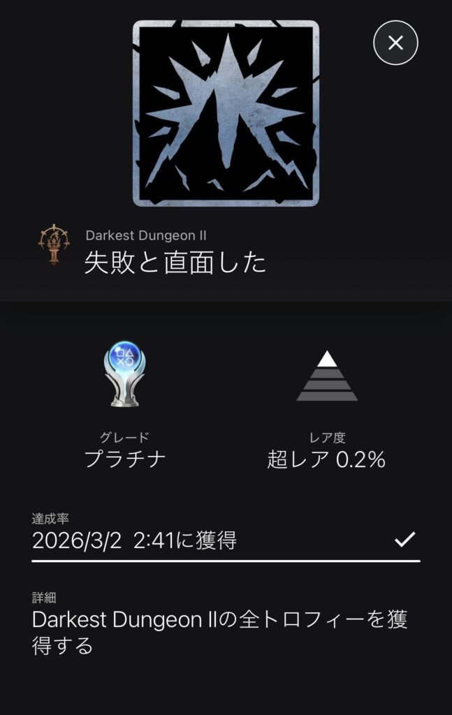 ダーケストダンジョン2 PS5版 プラチナトロフィー獲得